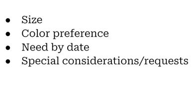 Dye baths and custom requests that require more time will be additional as well as shipping and handling.